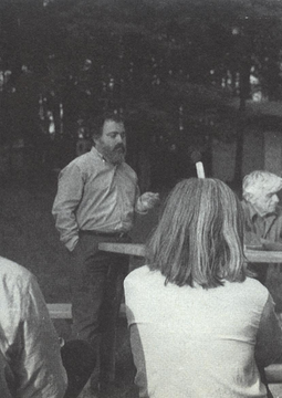 Monori találkozó, 1985. június 14–16. Monori Találkozó: Negyvenöt magyar értelmiségi tanácskozása Monoron a nemzet helyzetéről és a cselekvési lehetőségekről. A tanácskozás előadásait és vitáját szamizdatban adják ki. A képen Bence György és Mészöly Miklós . (fotó: Rajk László)
