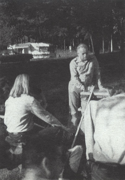 Monori találkozó, 1985. június 14–16. Monori Találkozó: Negyvenöt magyar értelmiségi tanácskozása Monoron a nemzet helyzetéről és a cselekvési lehetőségekről. A tanácskozás előadásait és vitáját szamizdatban adják ki. A képen Vásárhelyi Miklós. (fotó: Rajk László)