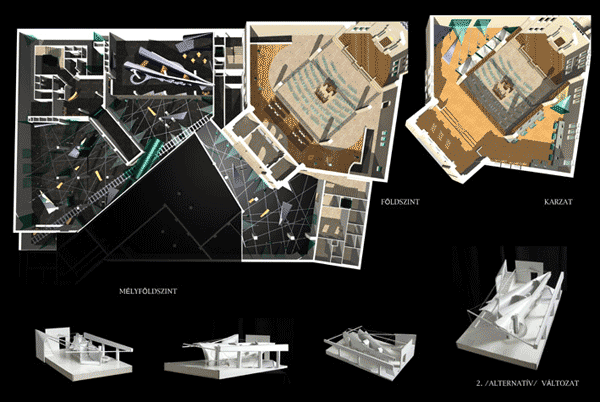 Valamikor megépült egy zsinagóga. A holokauszt legyilkolta. Üres lett, s az idõ majdnem elemésztette. A jelen aprólékosan rekonstruálta, s köré építette a kutatói központot, mely múltjának pillanatait hivatott rekonstruálni. A jelenbõl következõ paradoxon, hogy újjáépítésünkkel, hozzáépítésünkkel mi is egy újabb réteget vonunk a múltunk fölé. A jelen azonban sosem fedi el teljesen a múlt minden elemét. Ha más nem, a múlt struktúrájának halovány hálózata átsejlik a rétegeken.