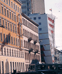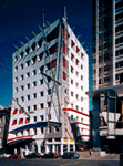 A Collegium Hungaricum ablakai a homlokza külső síkjához képest mélyen ülnek. Vörös színű, néha másfél méter szélességű, tölcsérszerű káváik perspektivikus képkeretet adnak az ablaknyílás által kivágott bécsi (látvány) szeletnek. Az épület homlokzata elé, attól különböző távolságra kifeszített kábelek a kivágott képet tovább tagolják, szeletelik. A belső szemlélő ha megmozdul, az ablak előtt fel s alá járkál, a különböző síkokban lévő kábelek egymáshoz és a kivágott látványhoz képest elmozdulnak, vagyis az ablak által keretezett képet dinamizálják. A kifeszített kábelek az épületen kívülieknek szinte láthatatlanok, oly vékonyak.