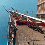 Az épület tölcséreivel megmutatja, hogy képeket akar befogadni. Befelé is láthatsz, de a bentlévőt mégis előnyben részesíti, mert csak ő előtte tárja fel a feszítőkábelek adta pókhálószerű finom vonalak dinamikáját és rezgésszerű zenéjét.