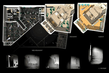 Célunk megvalósítása érdekében, hogy múltunkról mind valósághûbb képet kapjunk, kezdjük el óvatosan visszahajtani mindazt, ami rárakódott. Fejtsük le és hajtsuk vissza az idõ rétegeit. A padlón halványan kirajzolódó strukturális hálózat csíkjait, a padló, a fal, a födém egyes részeit.2
