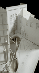Valamikor megépült egy zsinagóga. A holokauszt legyilkolta. Üres lett, s az idõ majdnem elemésztette. A jelen aprólékosan rekonstruálta, s köré építette a kutatói központot, mely múltjának pillanatait hivatott rekonstruálni. A jelenbõl következõ paradoxon, hogy újjáépítésünkkel, hozzáépítésünkkel mi is egy újabb réteget vonunk a múltunk fölé. A jelen azonban sosem fedi el teljesen a múlt minden elemét. Ha más nem, a múlt struktúrájának halovány hálózata átsejlik a rétegeken.