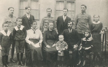 Az egyetlen kép a teljes Rajk családról. A fotó 1916 augusztusában készült Berettyóújfaluban. A hátsó sorban, balról jobbra: Gyula, Endre, József, Sándor, Lajos és Erzsébet. Az első sorban balról az első László, mellette Jenő, Vilma, a szülők, Mészáros Vilma és Rajk József a kis Bélával, valamint Berta.