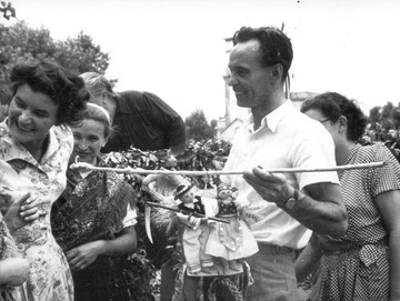 1947. Rajk Júlia és László a dorogi aratóünnepségen.