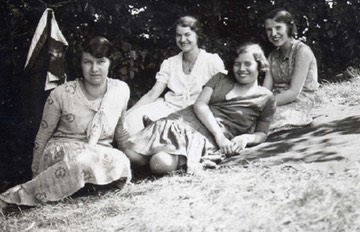 A három Földi lány, Júlia, Margit és Erzsi 1930. májusában, barátnőjükkel, Varga Etelkával.