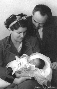 Rajk Júlia és László kisfiúkkal, a pár hetes Lacival, 1949. február - az egyetlen megmaradt közös kép a családról. Rajk Lászlót 1949. májusában letartóztatják, szeptemberben kivégzik.